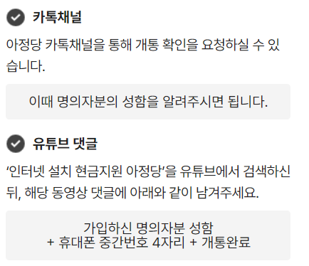 4. 15시 이전 설치 완료 건은 당일 현금 또는 사은품 제공됩니다.